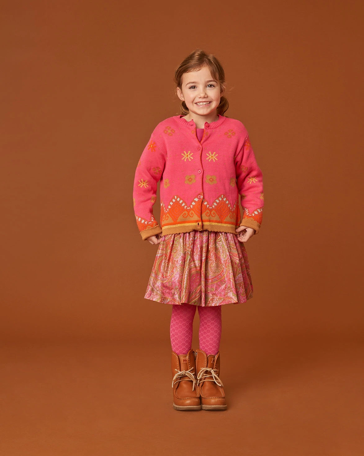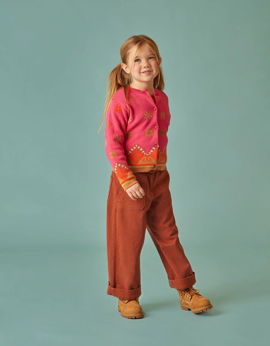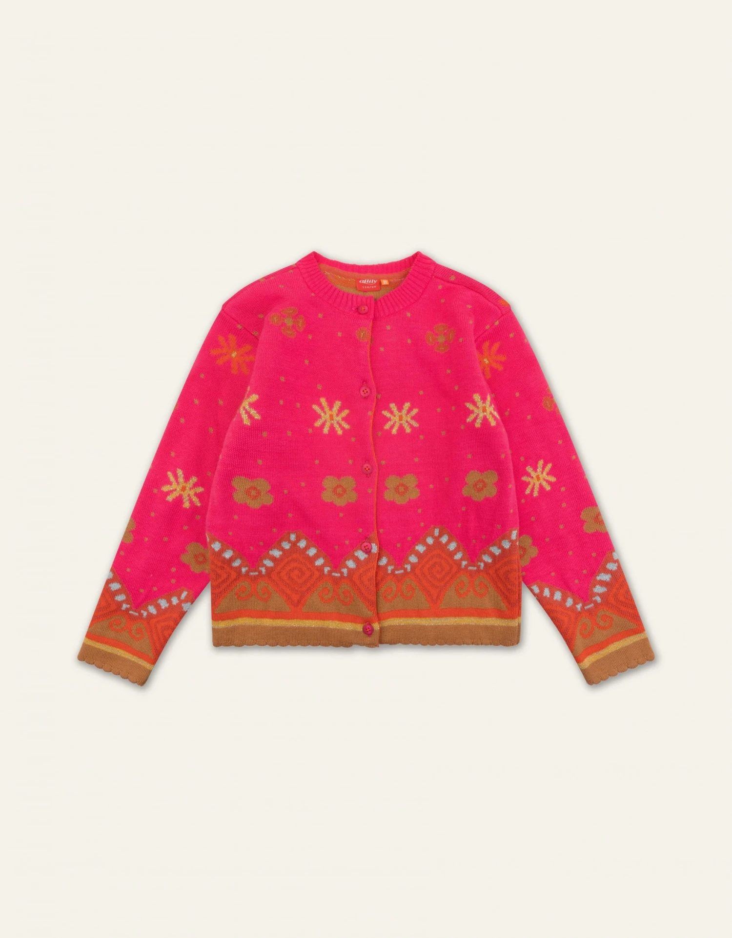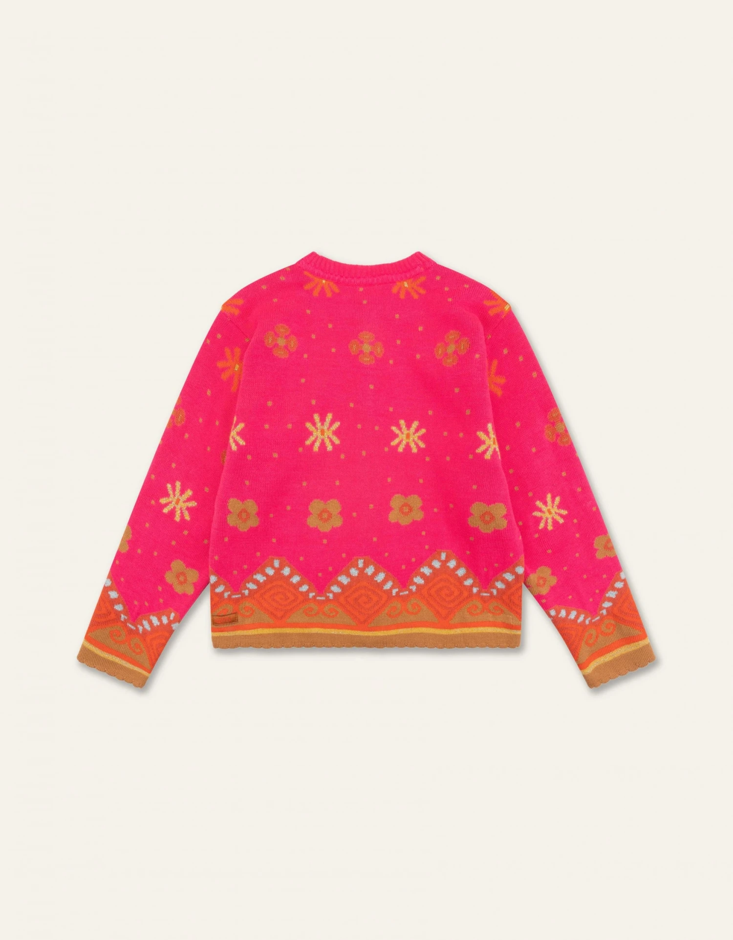 Dit jacquard gebreide vest heeft speelse motieven die worden versterkt door het gebruik van vrolijke, knallende kleuren.