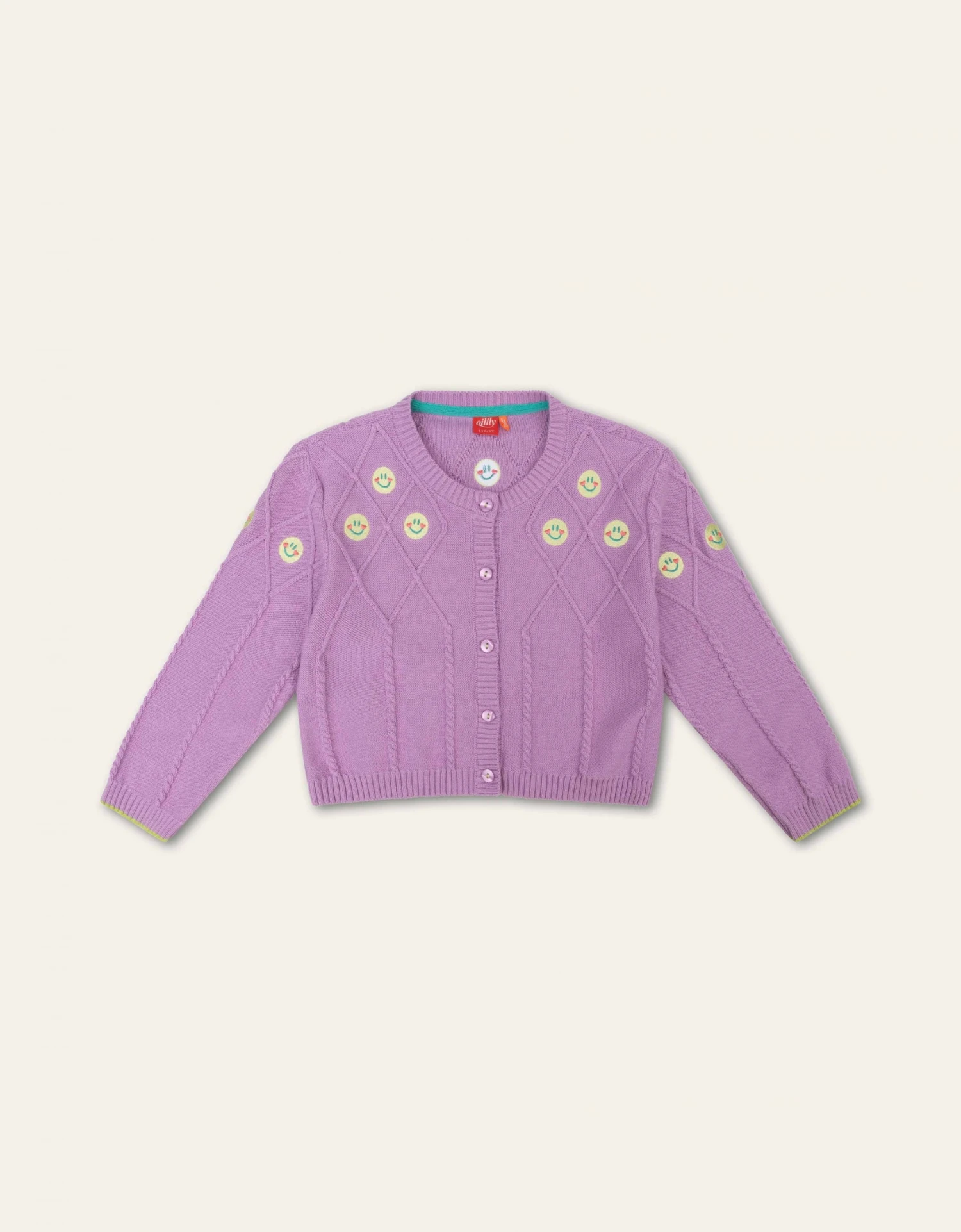 Vestjes zijn perfect voor laagjes-dagen. Vooral als ze ook nog eens zacht en gezellig zijn, zoals deze cable knit met geborduurde Oilily smileys. Hoe cute is dat?