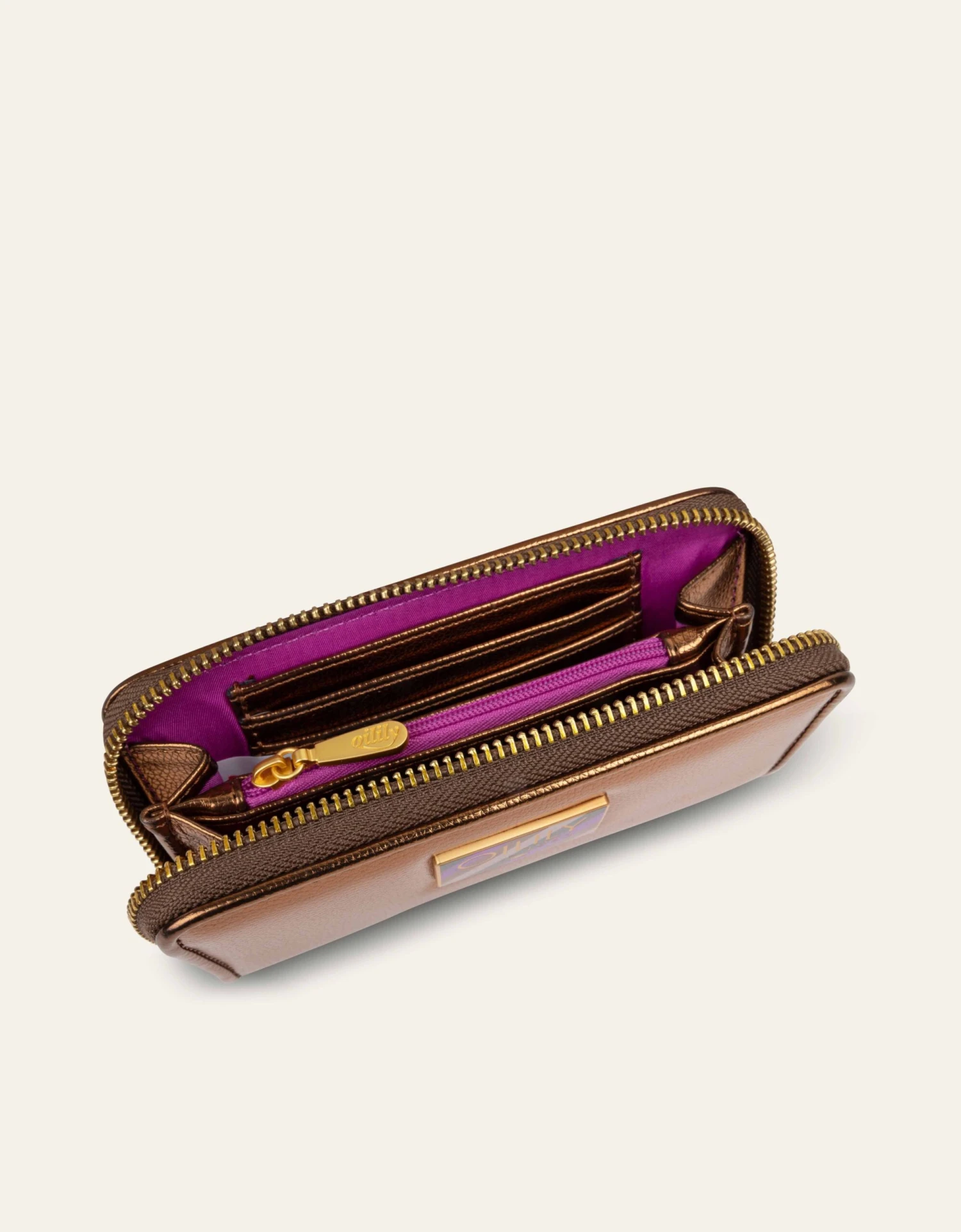 – Rondlopende ritssluiting geeft toegang tot 2 compartimenten, 1 ritsvak en 6 vakjes voor creditcards