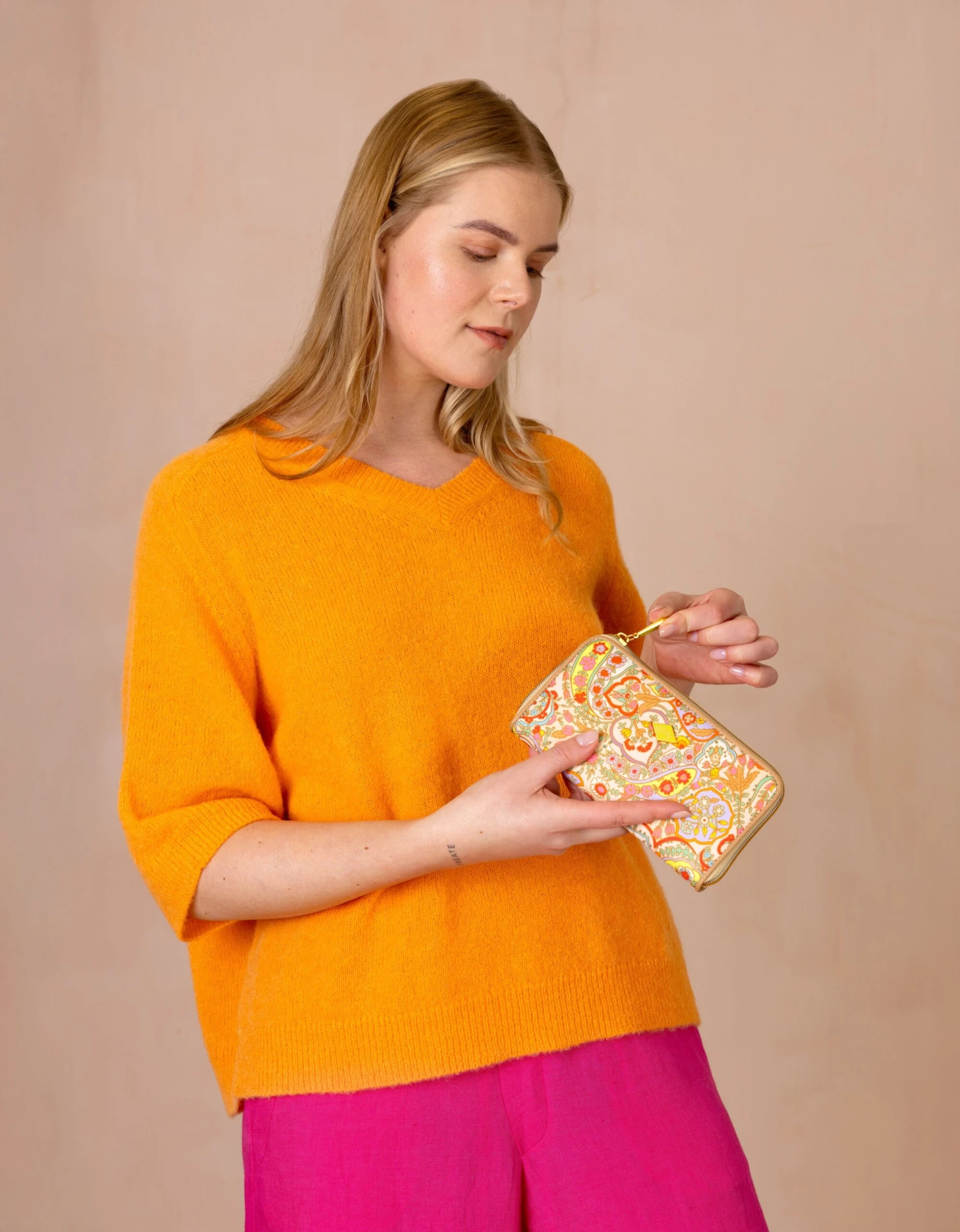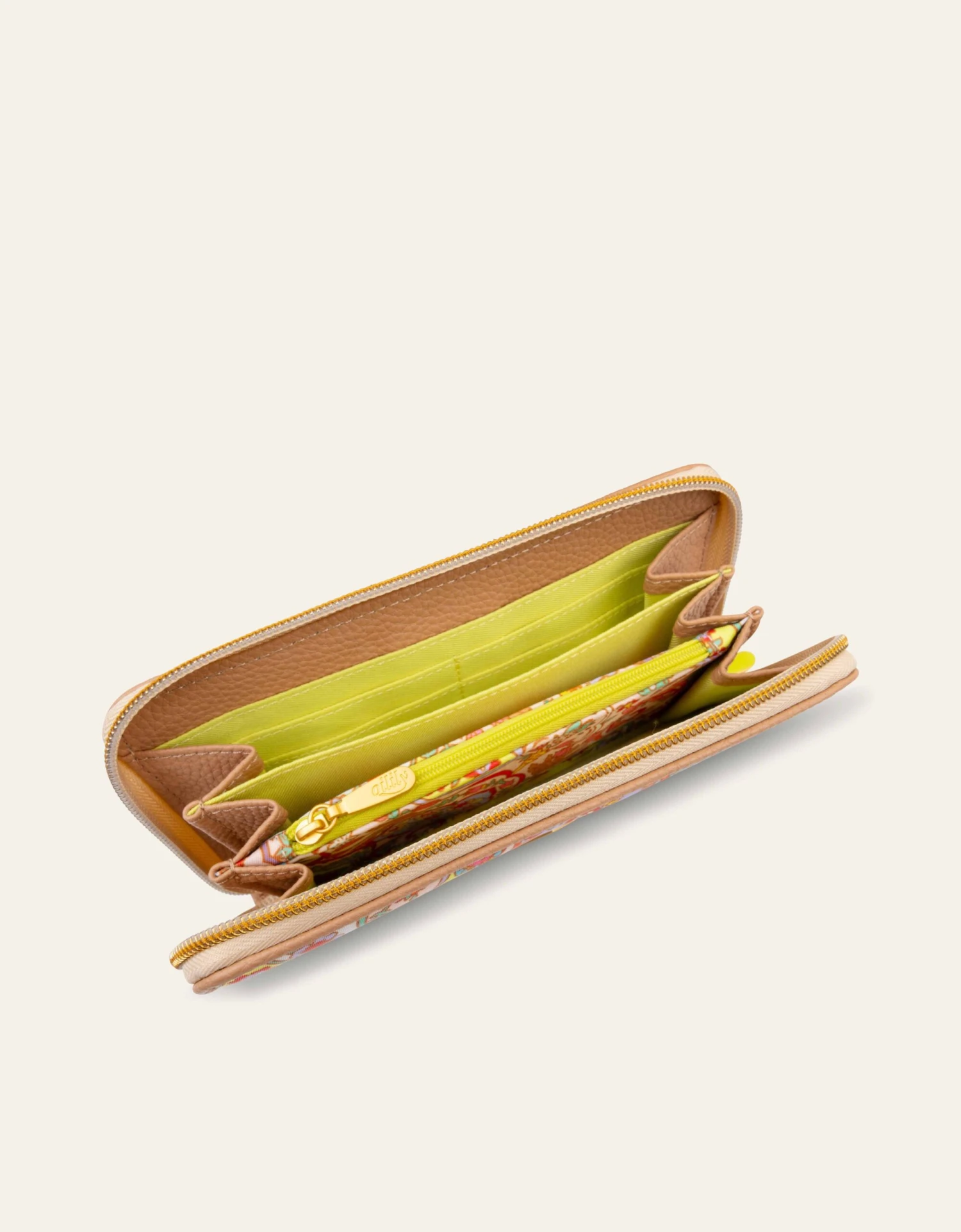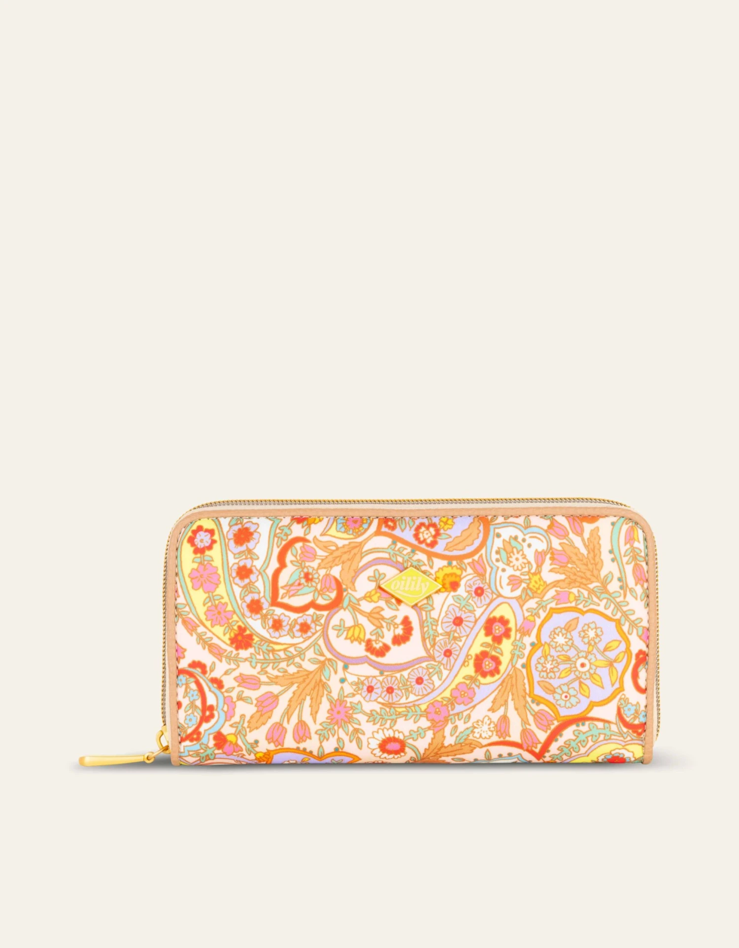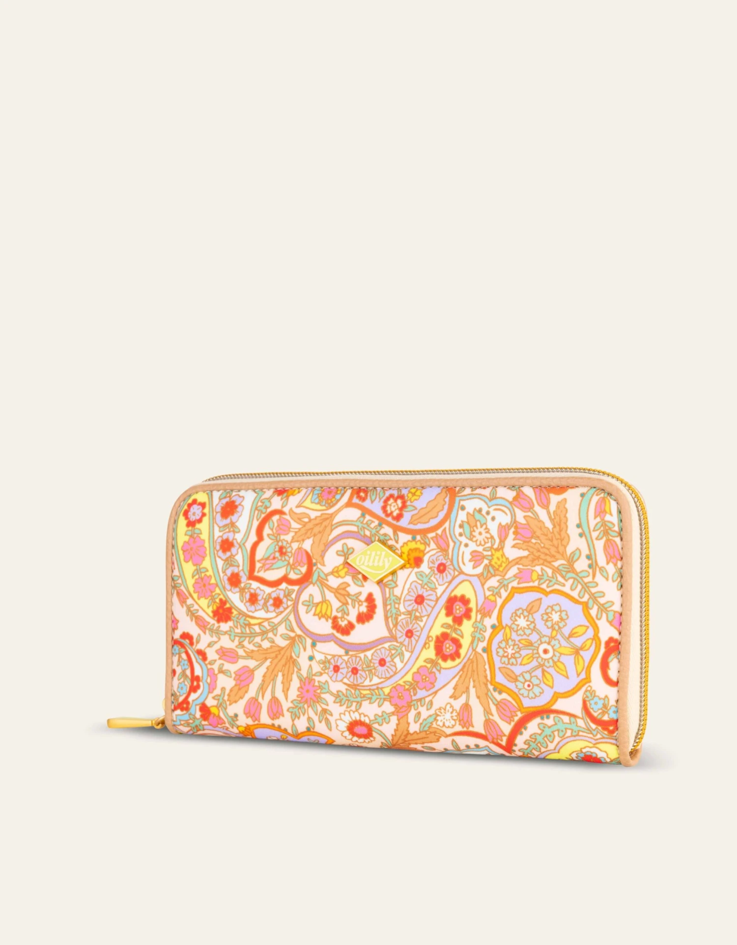 Een grote, stevige portemonnee met rits in Petal Park Paisley print.